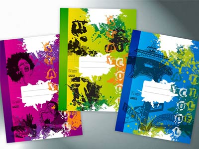 U tohoto projektu byl požadavek Papíren Brno vytvořit dynamičtější grafiku obalu sešitů, tak aby více lákala mladistvé. Nakonec se vybrala témata hudba, sport a cestování. Graficky jsme zvolili styl alá "grunge".