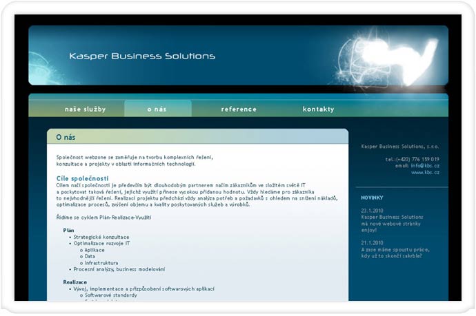 Zadáním bylo úplný redesign loga, tak aby vyjadřovalo modernost a dynamiku prosperující firmy. Zároveň mělo být v logu "zakódováno", že firma má dva majitele. Při tvorbě nového vizuálního stylu byl požadavek na modro-modré řešení (kombinaci světlého a tmavšího odstínu modré), tak aby byla zachována kontinuita s předchozími propagačními materiály. Provedli jsme pouze malý posun v odstínech modré, aby bylo dosaženo "serióznějšího" dojmu.
